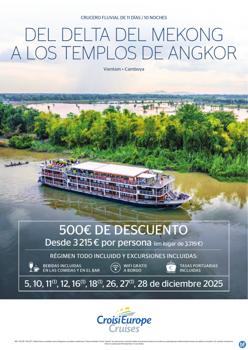 Hasta 500€ de descuento - crucero por el Mekong, Vietnam y Camboya - 11 días - rég. Todo Incluido - diciembre